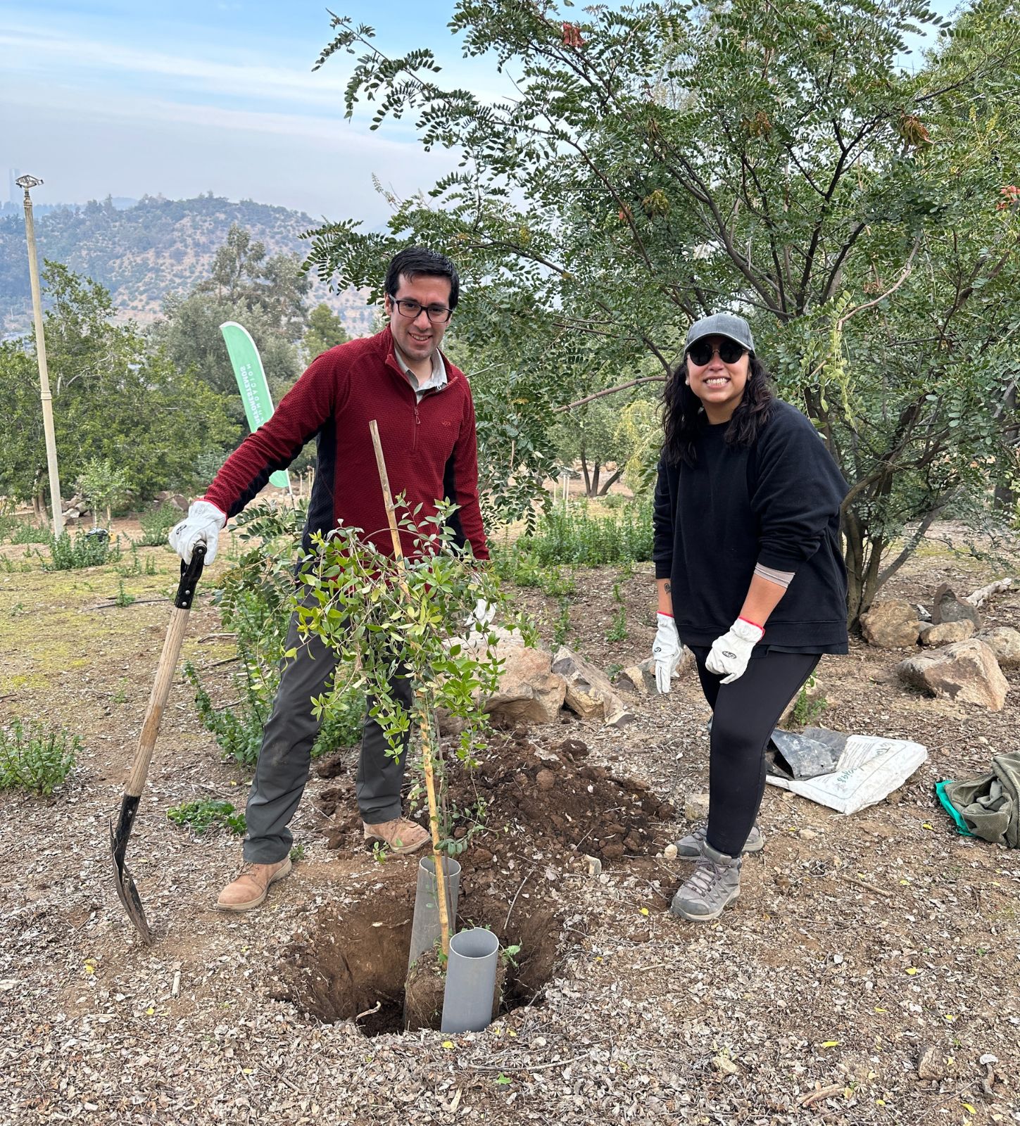 Durante la actividad, que se realizó en el sector de Bosque Santiago, se plantaron cerca de 20 árboles nativos como mayu, quillay, huingán y maitén con el objetivo de colaborar con la restauración y preservación del bosque nativo en este pulmón verde de la capital.